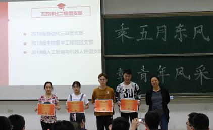 大会第二项,进行优秀集体和先进个人表彰。在过去的2018年度,在学院团委的领导下,2018级各团支部、班级围绕中心工作,服务大局,积极组织青年、引导青年、服务青年、维护青年合法权益,在各项主题教育、文体活动、社会实践、志愿服务、创新创业等活动中表现不俗,大会现场对五四领比中表现突出的先进团支部、一级团支部、二级团支部、优秀共青团员、优秀共青团干部进行表彰。
