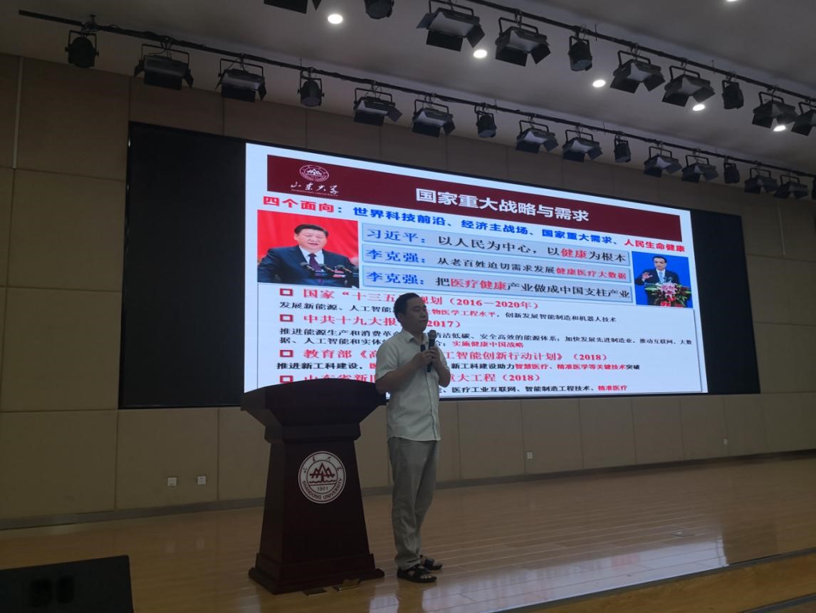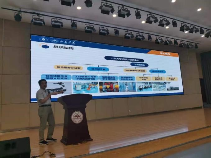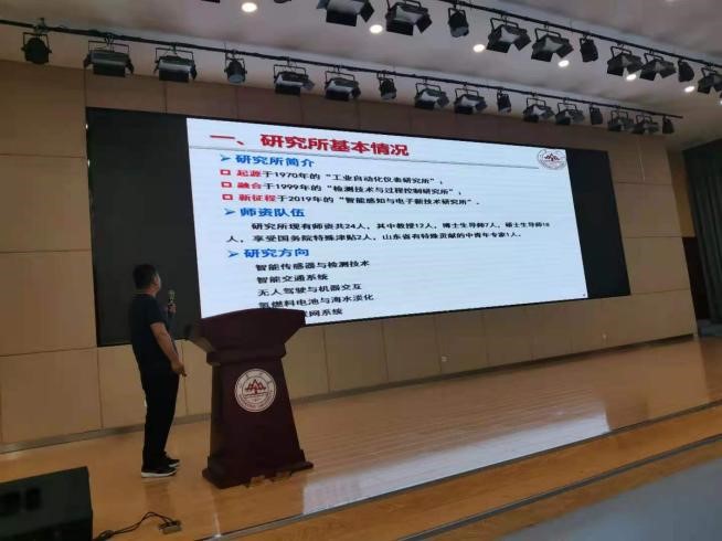 常发亮教授从学校文化、学院发展历程为切入点,结合多项研究成果,具体介绍了学院在服务国家重大战略和地方经济建设、团队建设、人才培养、科学研究以及研究生教育等方面情况。随后,姜明顺、田新诚、陈阿莲、王光臣、刘治平等五位学科带头人介绍了智能感知与电子新技术研究所、机器人研究中心、新能源与高校节能国家地方联合工程研究中心、自动化研究所、生物医学工程研究所的具体情况,重点向同学们展示了智能感知、机器人研究、工业互联网、物流工程、可再生能源发展、随机控制、智慧医疗等研究方向和研究成果。