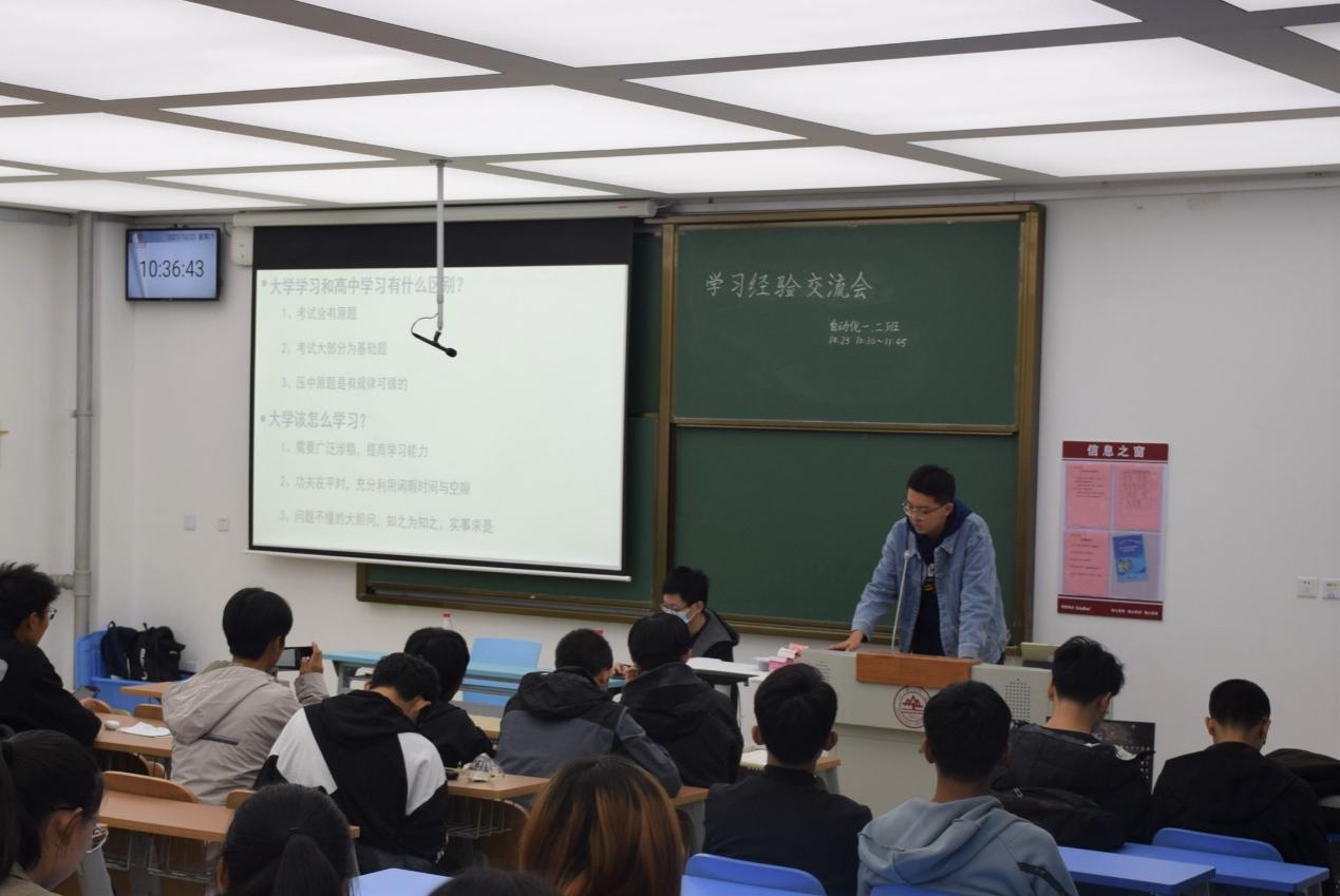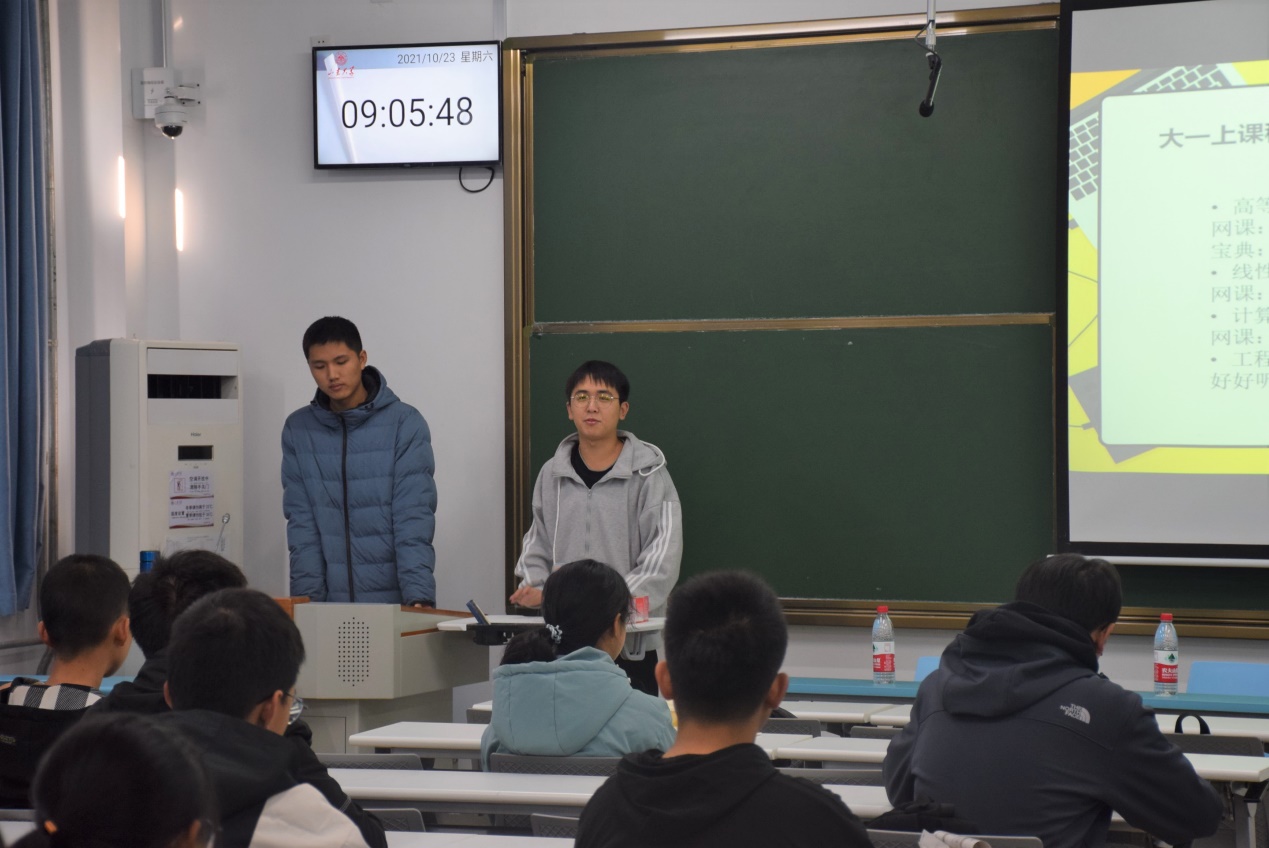 交流会开始,2020级优秀同学发言。高年级同学们先分享了自己在大学中的学习生活经历,针对不同的课程分享了自己的学习方法。他们建议新生们要注重课上与课下的结合,主动寻找资源用来充实自己,强调要在大一期间努力学习,为未来的课程学习夯实基础。同时,他们殷切希望新生们可以提高办事效率,培养团队意识,调节好学习与课余生活的关系,让自己的老员工活丰富多彩。