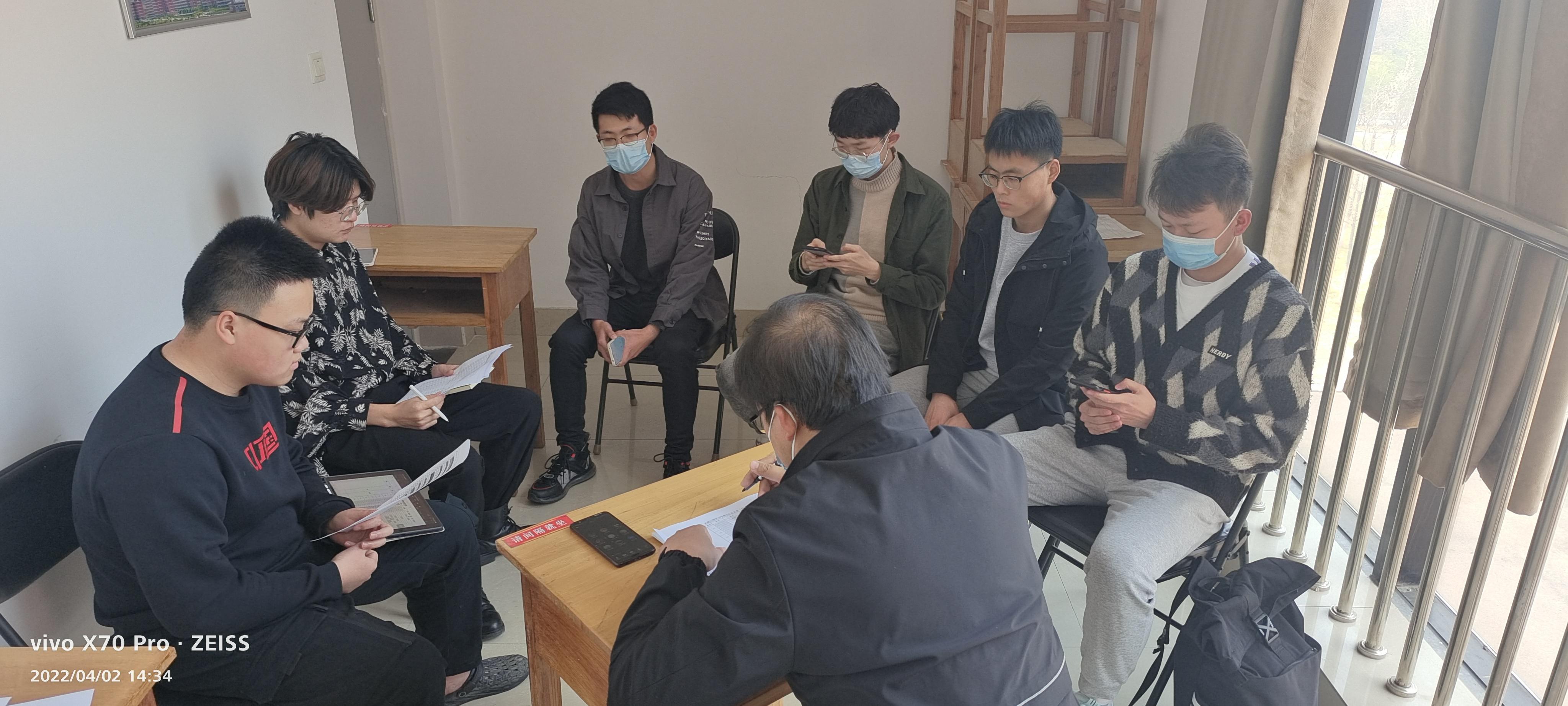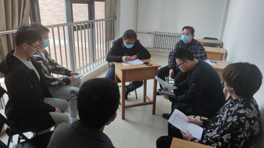 紧接着,赵志强和刘慧慧与负责人们进行细致全面的沟通交流。一方面,认真听取临时党支部书记张友浩有关19号楼值班情况的汇报,倾听党员们在开展工作时遇到的问题和诉求;另一方面,了解线上教学期间员工生活学习情况,关注员工生活需求。最后,两位老师针对临时党支部工作给出建议,党员干部要搭建起老师和员工的沟通桥梁,及时反馈,做好信息的传递。