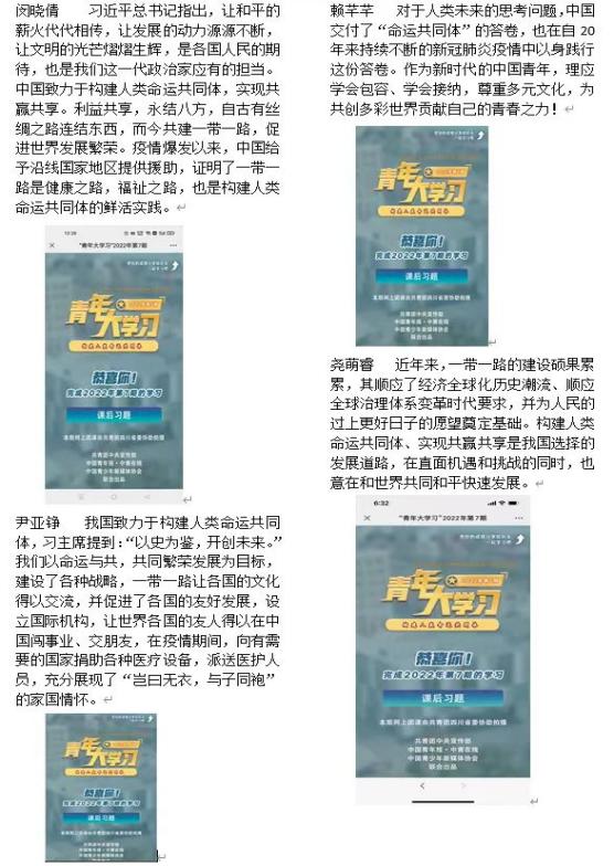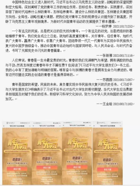 “青年大学习,我们一直在路上”打卡活动。伟德国际bevictor1946积极响应学校号召,以青年大学习为思想政治教育的重要抓手,以宿舍为最小单位,创新教育形式,丰富育人载体,打造沉浸式、互动式的思政学习教育,全方位、多层次扎实推进员工思想政治教育。本次活动自开展以来,各宿舍成员互相监督,青年大学习完成率显著提高,成效显著。伟德国际bevictor1946团委也将不断强化青年思想的政治引领,引导广大同学以更加昂扬奋进的姿态,为建团百年盛礼贡献青春力量。