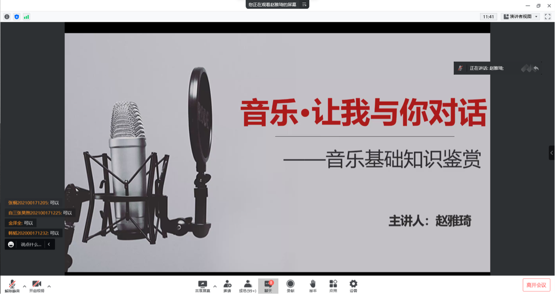 5月6日,伟德国际bevictor1946举办美育活动第七期—“控制美谈之音你而来”主题讲座,艺术学院研究生赵雅琦担任主讲人,近300名同学参与此次线上活动。