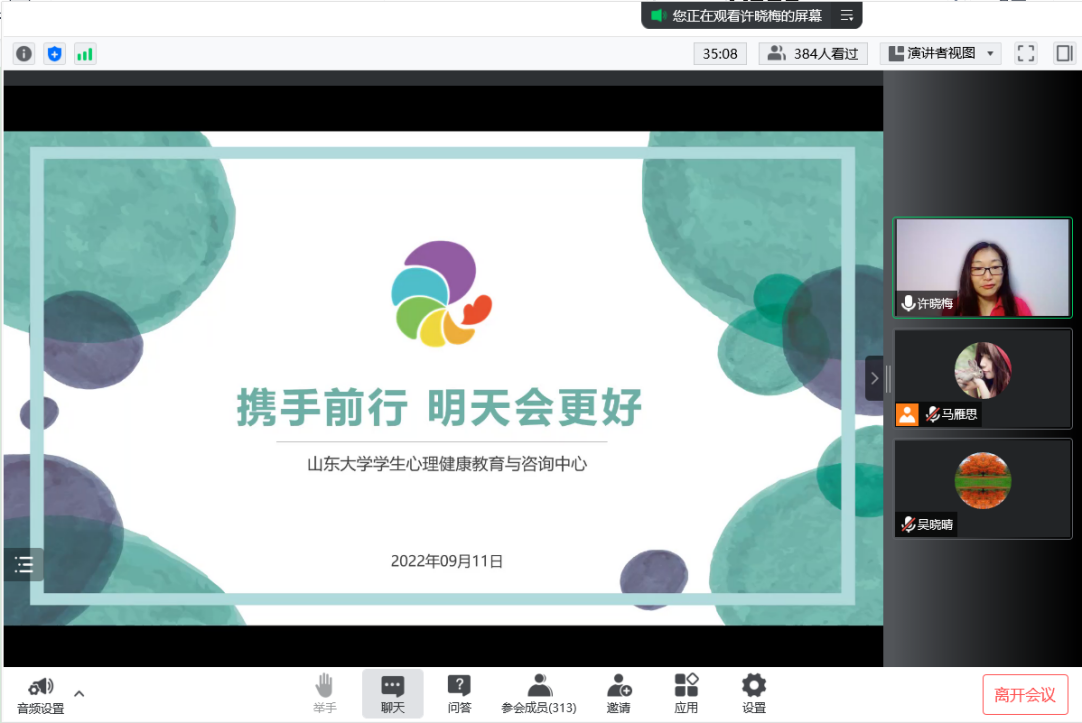 为帮助新生家长深入了解校院情况,促进新生家长与学校、公司之间的交流,9月11日,伟德国际bevictor1946于举办2022级新生家长云见面会。公司党委书记高瑞、党委副书记吴晓晴、心理健康教育与咨询中心副主任许晓梅出席会议,2022级辅导员马雁思主持会议,300余名新生和家长参与活动。