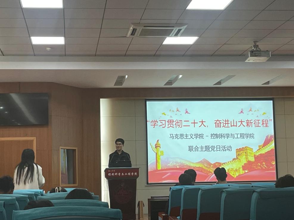 活动开始,李文振为本次党日活动致辞,对两个学院员工党员联合学习贯彻党的二十大精神表示欢迎,希望同学们结合各自的学习进行交流互鉴,提高政治站位,坚持学用结合、学以致用,在学校及学院各项事业的发展奉献青春和力量。之后,活动按照“讲、学、研、讨”的顺序依次进行。