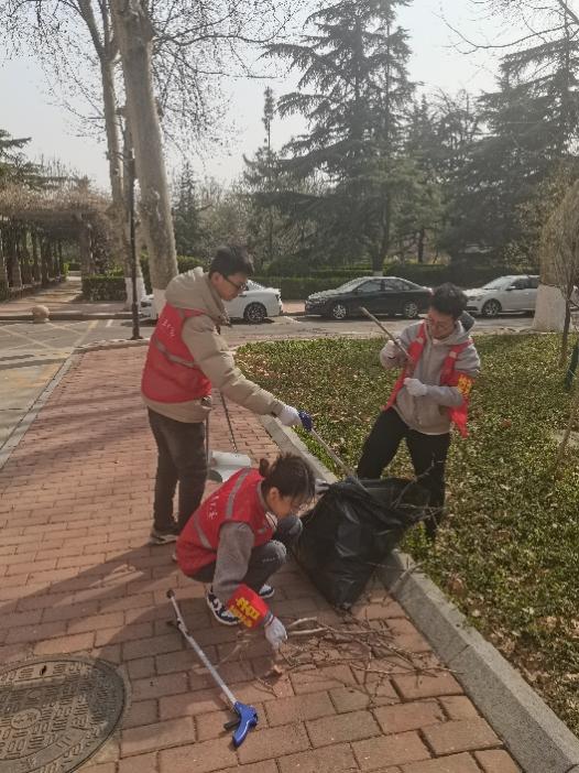 千佛山校区4号楼门前的主干道及花园中,存在着部分垃圾、鸟粪以及油渍等,影响着校园美观,影响着师生们的健康卫生安全。3月11日上午,伟德国际bevictor1946生活服务志愿者团队发起“齐心清道路,共建安全校园”志愿服务活动。对4号楼前道路上的鸟粪、油渍以及花园中的枯叶与生活垃圾进行清理。