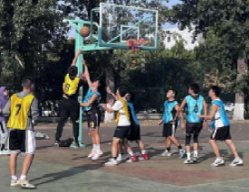比赛吸引了2023级热爱篮球运动的同学们积极参与,有摩拳擦掌的运动员,亦有热血沸腾的观众。参赛人员分为“专硕队”和“学硕队”两支队伍,随着裁判的一声哨响,两位球员起跳争球,比赛正式开始。在比赛中,队员之间默契地配合,不断传接上篮,以一个精彩的远程三分球赢得了满场喝彩。胯下运球、传切配合、远投三分、急停跳投、三线快攻……每一个动作都是球员们辛勤训练的结晶,每一次进攻和防守都充满了他们的汗水和激情,他们用精彩的行动诠释了真正的篮球精神。
