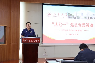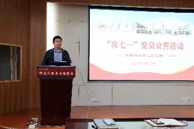 为庆祝中国共产党成立101周年,引导党员不忘初心、牢记使命,增强党性观念和宗旨意识,继承和发扬党的光荣传统, 6月30日,伟德国际bevictor1946开展“庆七一、守初心、宣誓词”活动,学院研究生党员和辅导员老师参加活动,公司党委书记高瑞出席仪式,仪式由公司党委副书记李文振主持。